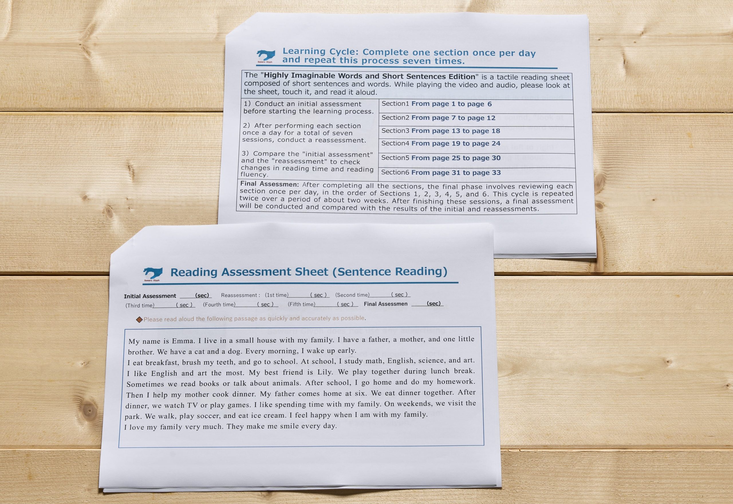 Sawaru Glyph materials include assessment sheets to evaluate the effectiveness of tactile reading practice. Reading and writing skills are assessed regularly to measure progress.